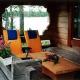 Электрическое освещение, электрическая плита, холодильник, камин, горячая / холодная вода, душ в сауне, питьевая вода привозится, туалет на улице, радио, барбекю